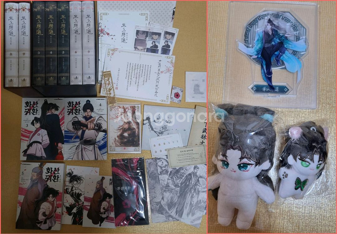 - 구매 전 아래 글 읽어주세요 - 윗치폼에서도 구매 가능합니다 - 중고나라 앱, 윗치폼, 번개장터에서만 판매하며 채팅으로 구매한다며 연락하고 타 사이트 유도, 문자 거래 유도 시 즉시 신고 및 차단합니다. - 구매 문의 외 답변❌ - 당보 아크릴&솜 제외 개별 양도 ❌ - 배송비 별도이며 세트별로 금액이 다름. - 환불 불가, 찔러보기 ❌, 네고 ❌ - 배송기사님이 물건을 인수하신 이후에 문제 발생 시 택배사에 직접 문의 부탁드립니다. (배송 중 파손 발생, 물건이 다른 지점으로 갔다, 미도착) -------------------- 1. 화산귀환 공식 세트 + 당보 솜 일괄 : 210,000원 (포장비 2,100원 별도. 택배비 착불) - 자세한 구성은 아래 두 세트 참고 -------------------- 2. 화산귀환 당보솜. 공식 당보 아크릴, 사천일짱, 애기나비 당보 일괄 : 40,000원 (포장비 1,200원 별도. 택배비 착불) -일괄 구매시 당보 엽서 & 청명 엽서 등 덤 𖤐 공식 당보 아크릴 : 20,000원 → 박스만 개봉 후 지퍼백 보관. 미전시 필름O(박스X) 𖤐 사천일짱 : 18,000원 → 꼬리X. 이염방지복 없이 옷 입혔고 엉덩이 부분 미세한 착색 외 제 눈에 특별한 하자는 보이지 않으나 예민하신 분은 구매를 삼가시기 바랍니다 𖤐 애기나비 당보 : 13,000원 → 삑삑이 솜. 개봉 후 아크릴 함 전시. 옷은 입힌 적❌ - 솜류 개별 1개 구매 시 포장비 500원 별도, 배송비 별도 - 아크릴 개별 구매, 솜류 개별 2개 구매 시 포장비 900원 별도, 배송비 별도 -------------------- 3. 화산귀환 공식 세트 : 190,000원 (포장비 1,600원 별도, 배송비 별도) - 화산귀환 단행본 스페셜 1부(하권 밑부분 배송하자로 자국), 화산귀환 단행본 스페셜 2부 (케이스 배송 하자로 모서리가 살짝 찌그러짐. 책은 이상X), 화산귀환 웹툰 단해본 3~4권, 화산귀환 웹툰 단해본 5권(엽서 등 특전⭕) - 구매 시 마지막 사진 속 청명 생카 럭드 홎님 청명 아크릴 등 덤