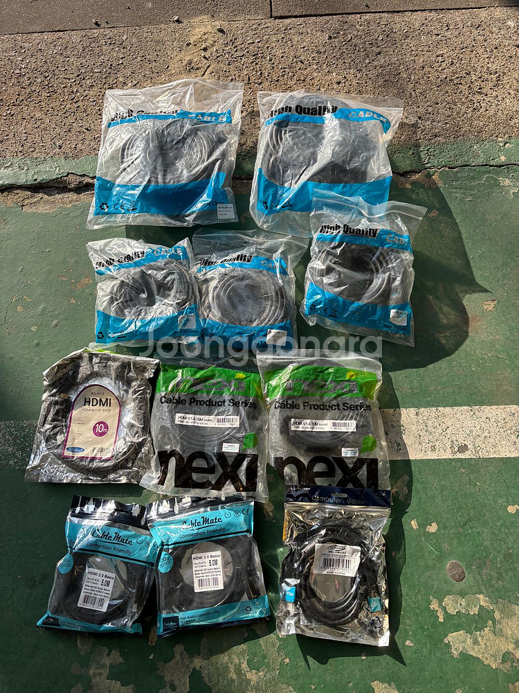 개인정보(거래정보)를 주고받는 행위는 사기에 노출될 수 있으므로 즉시 중고나라로 신고해 주세요20m 케이블 (2개): 각 20,000원 10m 케이블 (6개): 각 10,000원 HDMI 5m (2개): 각 6,000원 HDMI 3m (1개): 각 4,000원