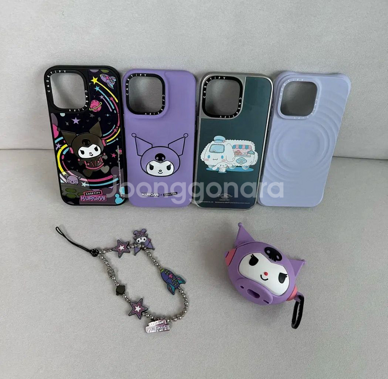 케이스는 사용한 제품입니다. 케이스많아서 몇번씩 착용은 안했습니다 ~! 1) 쿠로미 케이스 55,000원 2) 하늘색/시나모롤 케이스 45,000원 3) 쿠로미 에어팟 케이스 50,000원 4) 쿠로미 키링 50,000원
