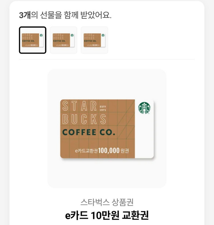 개인정보(거래정보)를 주고받는 행위는 사기에 노출될 수 있으므로 즉시 중고나라로 신고해 주세요스타벅스 e카드 10만원권x3 장있습니다 장당 92.000원 입니다 010.7632.7159