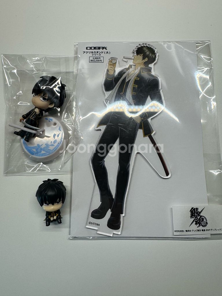 은혼 히지카타 야타이 아크릴 스탠드 단순개봉, 치비큥 개봉 전시품, 마치보케 단순개봉 일괄입니다. 야타이 아크릴 스탠드: 비닐 개봉하여 필름이 붙어있는지만 확인 후 (붙어있지 않음) 다시 비닐에 넣어 그대로 암실보관 했습니다.(전시, 사용X) 치비큥: 빛이 닿지 않는 장식장에 잠깐 전시하였다가 opp비닐에 사진과 같이 넣어 암실보관 했습니다. 구성은 모두 포함되어 있습니다. 본품에는 하자는 없어보이나, 발판에 긁힌 하자가 있으니 사진 참고해주세요. 마치보케: 캡슐에서 꺼내 가챠 보관함(암실 보관)에서 보관했습니다.(전시, 사용X) 얼굴 하단에 미세한 하자가 있으니 사진 참고해주세요.