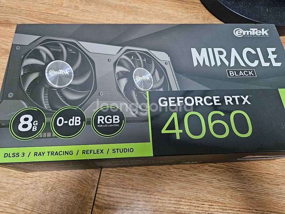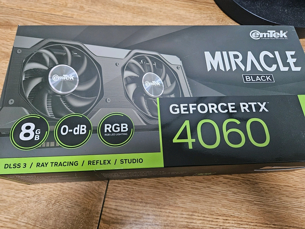 개인정보(거래정보)를 주고받는 행위는 사기에 노출될 수 있으므로 즉시 중고나라로 신고해 주세요이엠텍 미라클 RTX 4060 그래픽카드입니다 2024년 3월 5일 구매했습니다 박스있습니다