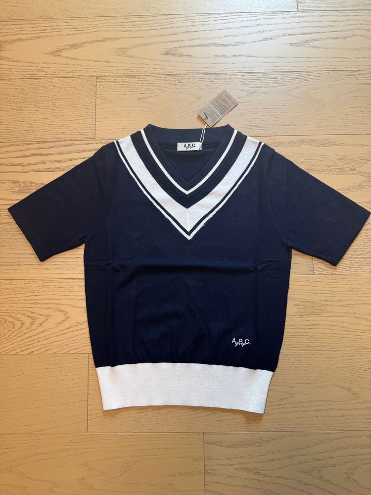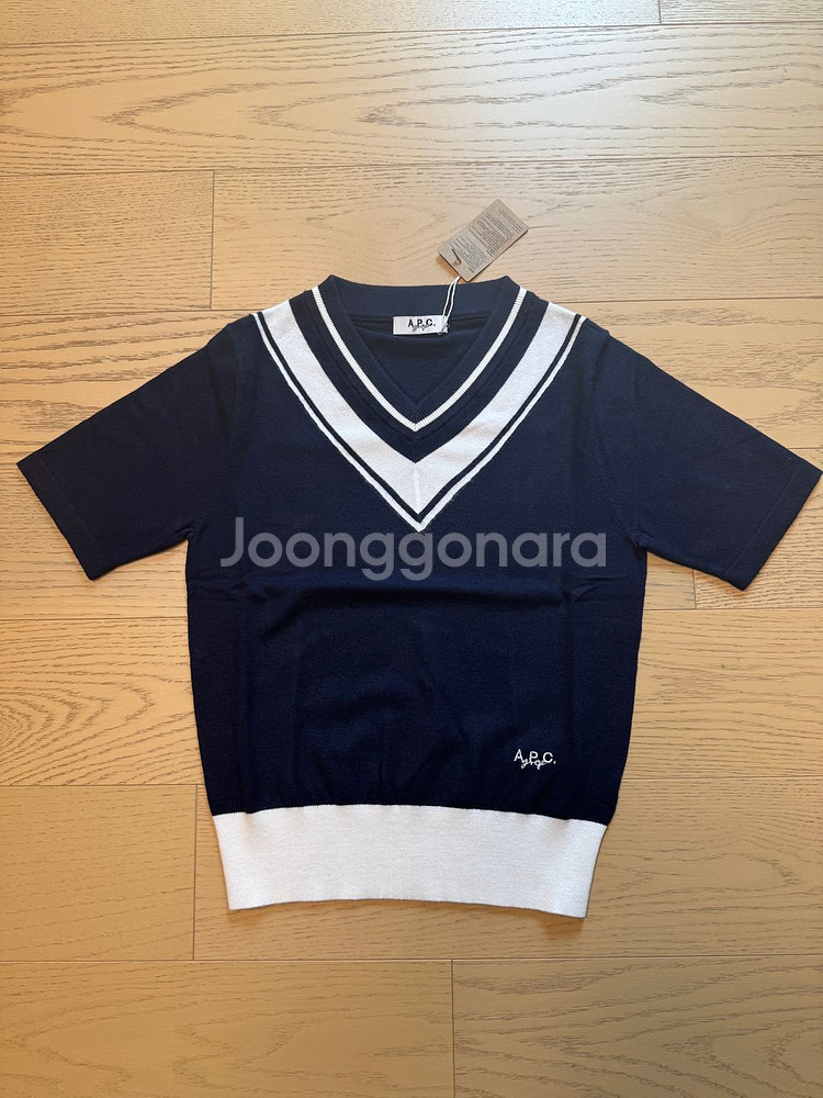 니트 반팔티셔츠예요. 그레이와 네이비색에 깔끔한 디자인입니다 사이즈s 가슴86 기장55