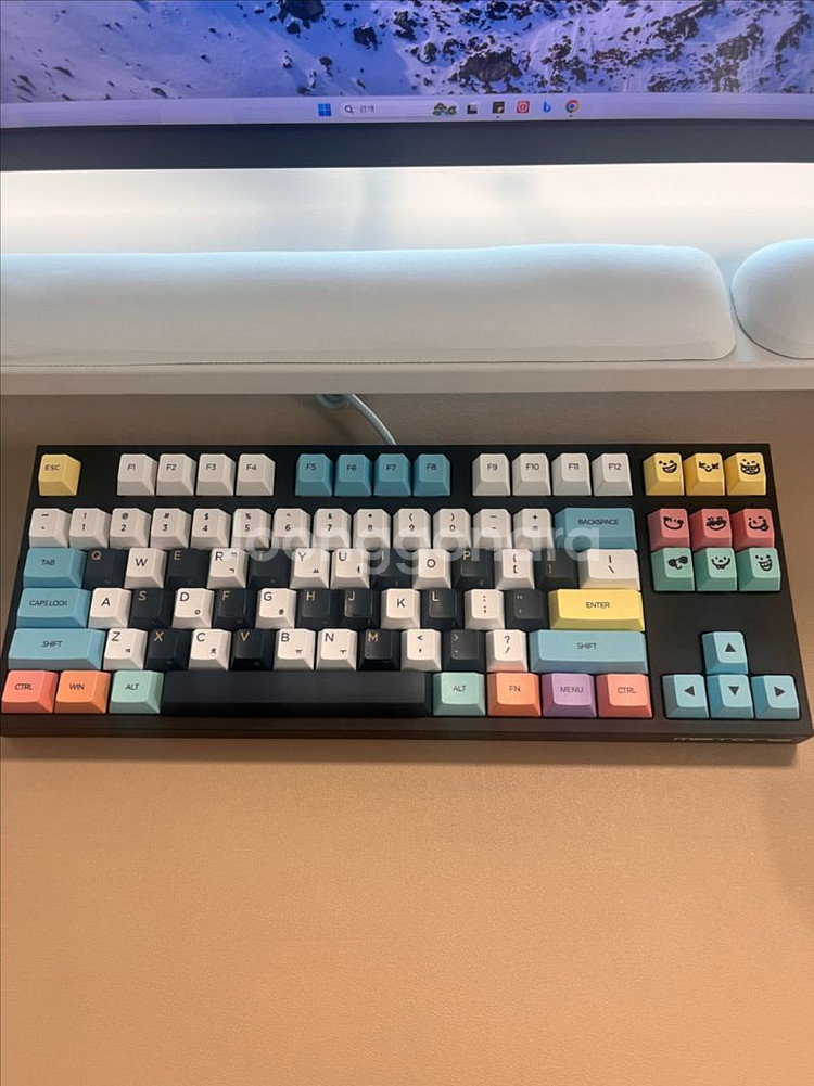 🌼엠스톤 그루브스톤 풀윤활 텐키리스 키보드 밀키축 45g (키보드 전용 케이블 포함) 🍀기계식 키보드 중에서 저소음 키보드로 유명한 엠스톤 저소음 밀키축 키보드입니다. 키보드가 많아서 몇 번 사용하지 않아 사용감 적습니다! 🌻기계식 키보드의 누를 맛 나는 재밌는 키감을 느끼고 싶으면서 사무실이나 카페 등 조용한 공간에서 눈치 안 보고 사용하고 싶은 분께 강추드립니다! 🌺사람이 직접한 수제 풀윤활 버전 키보드로 윤활이 골고루 잘 되어 있어서 전체적으로 밀키축 특유의 부드럽고 쫀득쫀득한 키감을 잘 느낄 수 있답니다. 🌸기본 블루블랙 색상에 유명한 키캡 브랜드 사오파오의 파스텔톤 분필 키캡(당시 4만원 이상 주고 구매)을 끼워 넣은 상태여서 알록달록 실물이 참 예쁩니다. 밖에서 이 키보드로 작업하고 있으면 지인들이 꼭 탐내면서 키보드 정보를 물어볼 정도로 예쁘답니다! 🌼키보드와 키캡을 비싸게 따로 사서 일일이 빼고 끼워넣는 번거로움 없이 편하게 나만의 스페셜한 키보드를 즐기고 싶은 분들께 추천드립니다^^ *키보드 물론 정상 작동하고, 상태 아주 좋습니다. 알콜솜으로 키보드 소독해서 드립니다. *네고x, 환불x *직거래 또는 택배 거래 가능합니다.