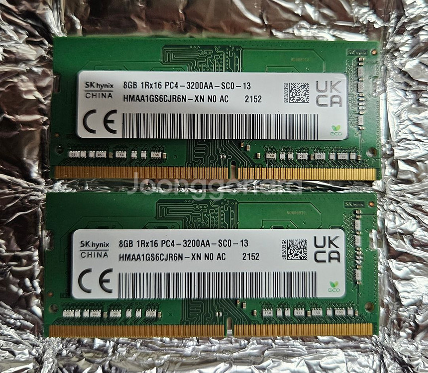 개인정보(거래정보)를 주고받는 행위는 사기에 노출될 수 있으므로 즉시 중고나라로 신고해 주세요sk하이닉스 ddr4 pc4 3200aa 8g 램 (노트북용) 1개 판매합니다. 개당 5.5만원 입니다.