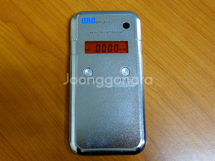 안녕하세요? ORC UV- 351 광량 측정기,UV미터입니다. 성능,기능 정상입니다.(테스트완료) 모 델 명 UV-351 측정파장연대 320 ~390nm 피크감도파장 360nm 광량측정범위 0.1~19999.0 mJ/cm² 광량표시범위 1~19999 mJ/cm² 조도측정범위 0.1~100.0mW/cm² 사용온도범위 0~60℃ 단 결로 하지 말것 크기 / 무게 79 x 160 x 7 mm / 180g 전 원 코인형 리튬 전지(연속사용 300시간)