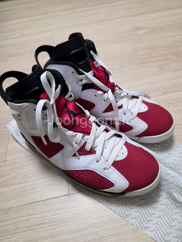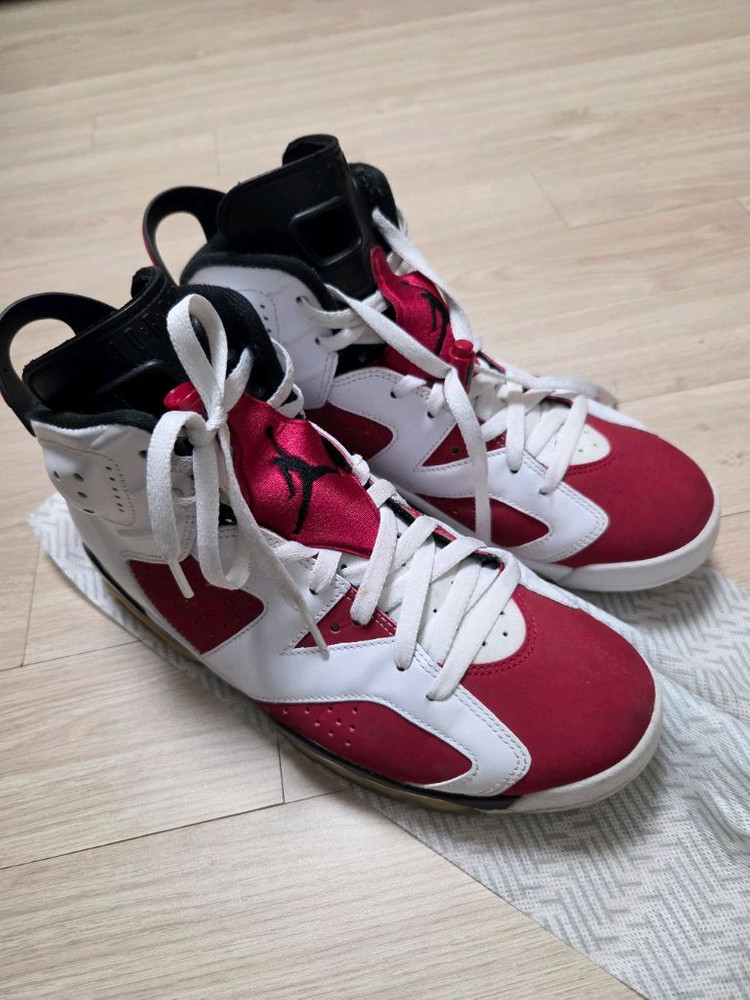 21년 나코 당첨 조던6 카마인입니다. 280 사이즈이고요. 이사하면서 상자나 탭은 버린 것 같습니다 ㅠ 대신 당첨 됐을때 받은 카톡 첨부합니다. 정품입니다. 보시다시피 클리어솔 변색이 좀 오긴 했는데 그 외 다른 부분은 상태 매우 양호합니다. 사실 사이즈를 좀 실수해서 1년에 한 2,3번 신었습니다. 개인적으론 보기 싫은 변색이 아니라 세월의 자연스러운 맛이 아닐까 생각합니다?(아무말) 마음 편하게 파워 실착하실 분께 추천드립니다. 정말 적게 신었어요. 쿨거시 약간 에눌 가능합니다. 필요하면 사진도 더 보내드립니다 편하게 문의 주세요~