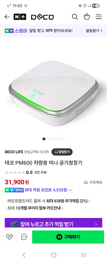 미사용 새상품 데코 차량용 공기청정기 Pure Max 600 입니다 - 모델명: PM501 - 색상: 화이트 - 특징: 스마트 터치, 활성산소 살균, 쾌속 공기청정 박스 및 구성품, 필터 포함되어 있습니다 (단 벨크로찍찍이는 미포함) 사은품으로 받았는데 이미 공기청정기가 있어 싸게 내놓습니다 [참고] https://cr3.shopping.naver.com/v2/bridge/searchGate?nv_mid=81630254091&cat_id=50003971&query=%EB%8D%B0%EC%BD%94%20%EC%B0%A8%EB%9F%89%EC%9A%A9%20%EA%B3%B5%EA%B8%B0%EC%B2%AD%EC%A0%95%EA%B8%B0%20Max%20600&t=mdeltcb5&h=b094feed85a648932449a2f9f84d4c4cf4bedafa&frm=MOSCPRO
