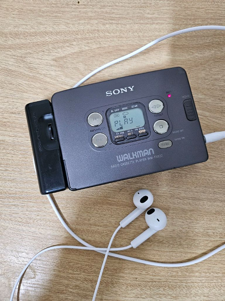 소니 워크맨 WM-FX822 입니다. 전통적인 FX시리즈 메커니즘을 가진 일본 제조모델이며 오토리버스, SKIP AMS,EX DBB,월드튜너 등을 탑재한 제품입니다. 외관 양호하고 음질문제 없으며 꽤 성능좋은 크레신 이어폰과 베터리케이스, 테입1개 포함입니다.