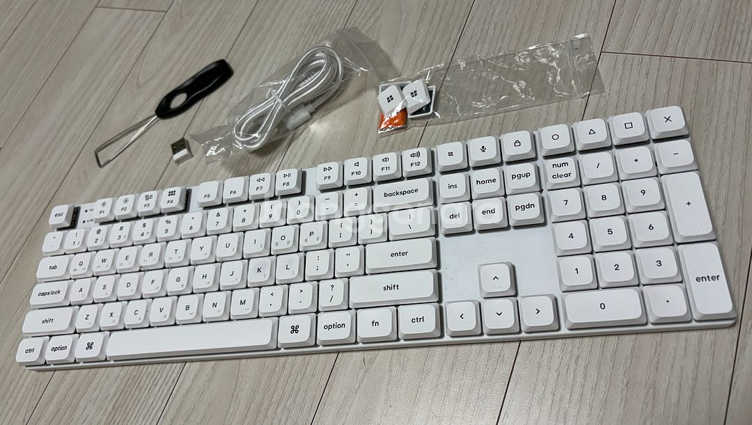 - 제품명 키크론 K5 SE2 화이트 유/무선 로우프로파일 저소음 적축 - 구성품 키보드 + USB + 케이블 + 키캡 여분 + 키캡 분해도구 - 상태 외관 이상 없음(깨끗함, 스크래치 없음) - 사용기간 3~4개월 이내 - 택배비 별도