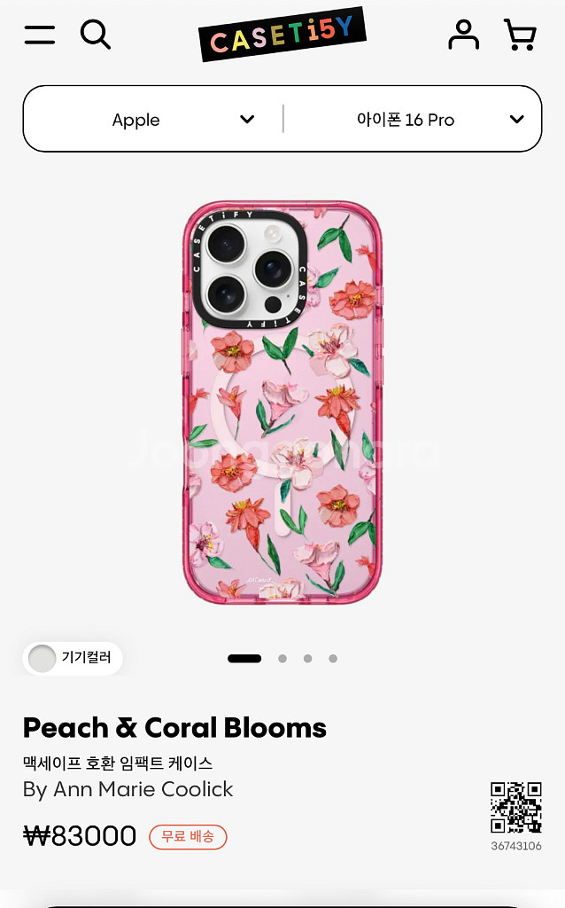 아이폰16아이폰16프로 케이스티파이 Ann Marie Coolick 디자인 팝니다 실착용2주 생활기스말곤 깨끗해요아이폰16프로 맥세이프가능 26.1.18 부천 현대 케이스티파이 매장에서 구입했고 6개월 보증기간 아직 남아있습니다