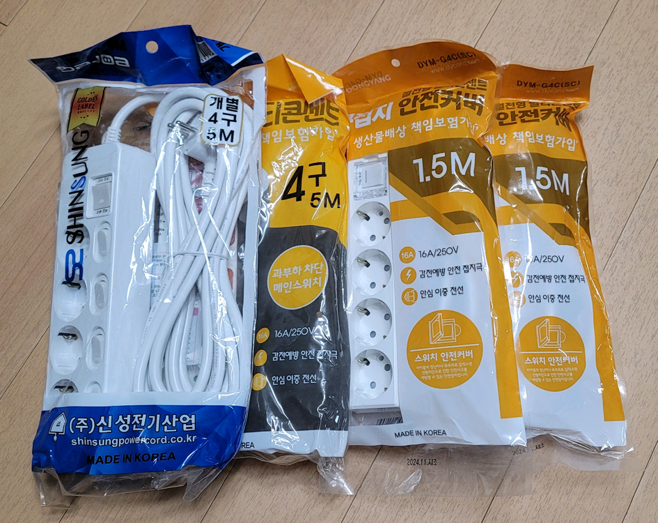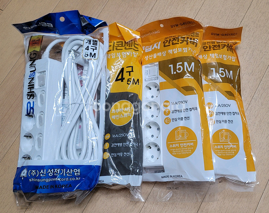미사용 새상품입니다. 개별 4구 5m×2개 / 1.5m×2개 총4개입니다. 배송비포함.