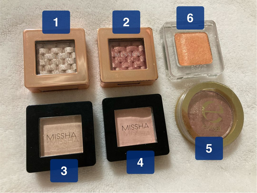 계좌거래 기준 금액입니다 (마지막사진 참고) ㅡㅡㅡㅡㅡㅡㅡㅡㅡㅡㅡㅡㅡㅡㅡㅡㅡㅡㅡ ❗️제발 글 다 읽고 채팅주세요 소모적인 채팅 힘들어서 미리 긴 설명과 개별샷 다 편집해서 올리는겁니다 글에 있는 내용 반복 질문하면 답 안해요 ✔️1. 미샤 - 이탈프리즘 11호 바닐라슈가 ❗️판매완료 ✔️2. 미샤 - 이탈프리즘 15호 핑크벨 정가 / 개당1.6 판매가 / 개당1.4 2-3회 사용 사진처럼 양각 다 살아있을만큼 사용감은 거의없음 전설의 미샤 이탈프리즘..펄감이 기똥찬 라인이라 핑크벨 핑잘봄~봄브라 기준 아주 이뻐요 단종템이니 예민한분 구매x ✔️3. 미샤 - 모던 섀도우 산타바바라 판매가 / 1.0 은은한 하이라이터로 유명한 산타바바라 입자가 작아서 과한펄 싫어하는분들도 쓰기에 이질감없어요 콧망울,눈앞머리용으로 강추 ✔️4. 미샤 - 섀도우 오피스코랄 (봄웜~여쿨) ✔️7. 제이투엠투 - 새틴로얄실크 01 (**오피스코랄은 안팔리면 사용할예정이라 두개 일괄로만 팔아요) 판매가 / 두개 일괄 1.5 (개별판매x) 미샤 오피스코랄 - 핑잘봄,여쿨 인생섀도우로 많이 언급되는 템 리뉴얼되고 색상달라져서 구형 이제 못구해요 애교살에도 자연스러운데 블러셔 바른후에 중앙에 살짝 얹어주면 기절합니다 너무이쁨.. 볼에 하이라이터 안쓰는사람도 충분히 쓸만한 은은한광이에요 사용감있으니 사진확인해주세요 제이투엠투 - 미샤 산타바바라,오피스코랄과 비슷한 발색감 (산타바바라랑 더 비슷함) 과하지않은 펄섀도우라 하이라이터도 자연스러움 마찬가지로 핑잘봄~뉴트럴한쿨톤 추천 1-2회 극소량 발색 ✔️5. 에스쁘아 섀도우 글리터 오렌지피버 판매가 8000 강민경 섀도우로 유명했던 스틸라, 아멜리 오렌지환타 대체템 바세린광의 밀착있는 글리터섀도우고 단종템이라 떨값으로 안올려요 몇번안썼는데 긁힘자국이 있어요 (사진확인) ✔️6. excel 엑셀 샤이니 섀도우 s101 판매가 8000 국내에서 판매하지않는 일본 현지 제품 핑크브론즈 색감이고 태연 섀도우로 유명합니다 옛날에 청담샵에서 근무할때 애교살에 마죠리카랑 같이 많이 사용했었어요 ** 뚜껑이 분리돼있어서 테이프로 고정해뒀어요 감안해서 일본현지금액보다 더 싸게 팝니다 긁힌자국들 좀 있지만 사용감은 많지 않음 날짜 예민한분❌ 가루네버다이를 믿는분들만 구매하세요 반품,환불 불가입니다 ㅡㅡㅡㅡㅡㅡㅡㅡㅡㅡㅡㅡㅡㅡㅡㅡㅡㅡㅡㅡㅡ ✅채팅주실때 몇번 상품인지, 어느택배로 받으실지 바로 본론부터 남겨주세요 아무 내용 없이 '안녕하세요' '문의드려요' 만 오는 채팅은 바빠서 따로 답 안드립니다 세븐착한택배 2100 씨유알뜰 2500 일반 4000 (cu 2-3일내 접수 일반,착한택배는 보통 당일밤접수)
