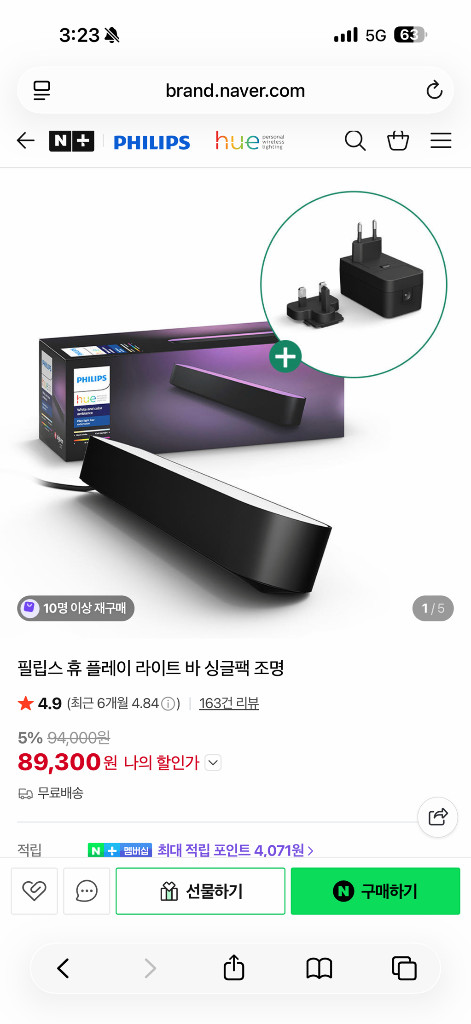 필립스 휴 플레이 라이트 바 싱글팩 2개