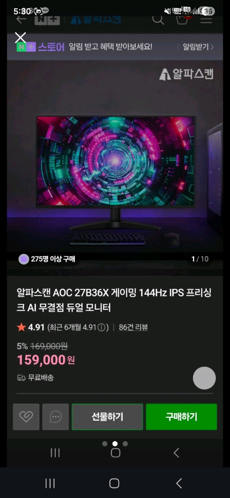 개인정보(거래정보)를 주고받는 행위는 사기에 노출될 수 있으므로 즉시 중고나라로 신고해 주세요알파스캔 27B36X FHD 144HZ 26년2월 구매한 제품이고 한달정도 사용하다 지난달에 QHD모니터로 갈아탔습니다 모델 자체가 최근에 나온 모델입니다 모니터받침대는 서비스로 드립니다 화성 안산 시흥 근처까지는 가져다드릴수있어요