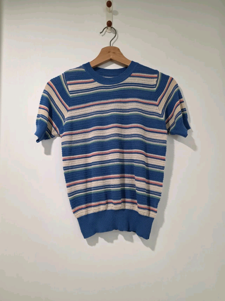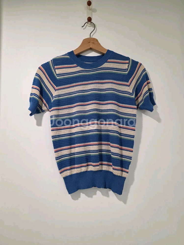 개인정보(거래정보)를 주고받는 행위는 사기에 노출될 수 있으므로 즉시 중고나라로 신고해 주세요90사이즈 스트라이프 반팔 니트예요. 블루 베이스에 화이트와 핑크 스트라이프가 들어간 깔끔한 디자인이고, 상태 양호합니다.
