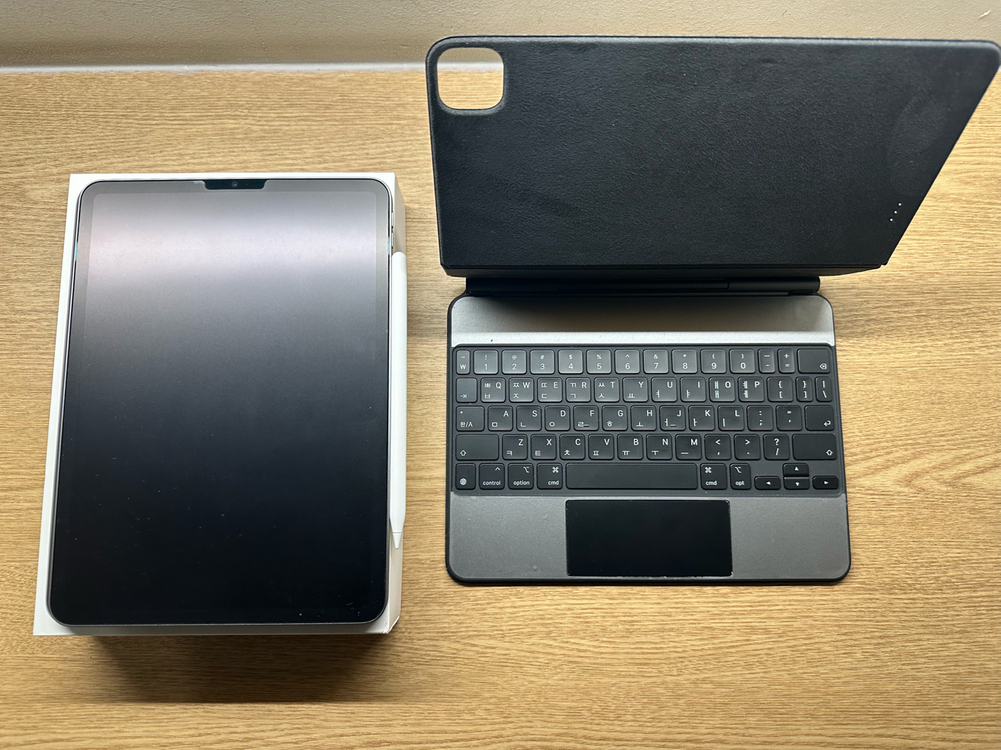 아이패드 프로 11인치 4세대 M2 256GB 스페이스 그레이 정품 매직 키보드 + 애플 펜슬 2세대 아이패드 박스만 있습니다(충전기, 케이블 없음) 패드 외관상태는 아주 깔끔합니다 하자 이상 없습니다 키보드는 사용감 있습니다 (외부 스킨 부착, 키스킨 포함) 펜슬도 사용감 있습니다 배터리 효율: 91% 택배 안전거래 가능합니다