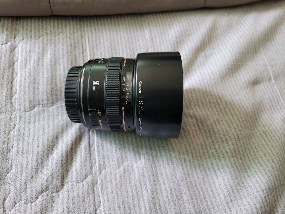캐논 EF 50mm f/1.4 - 앞뒤캡, 후드 포함 상태 좋습니다.