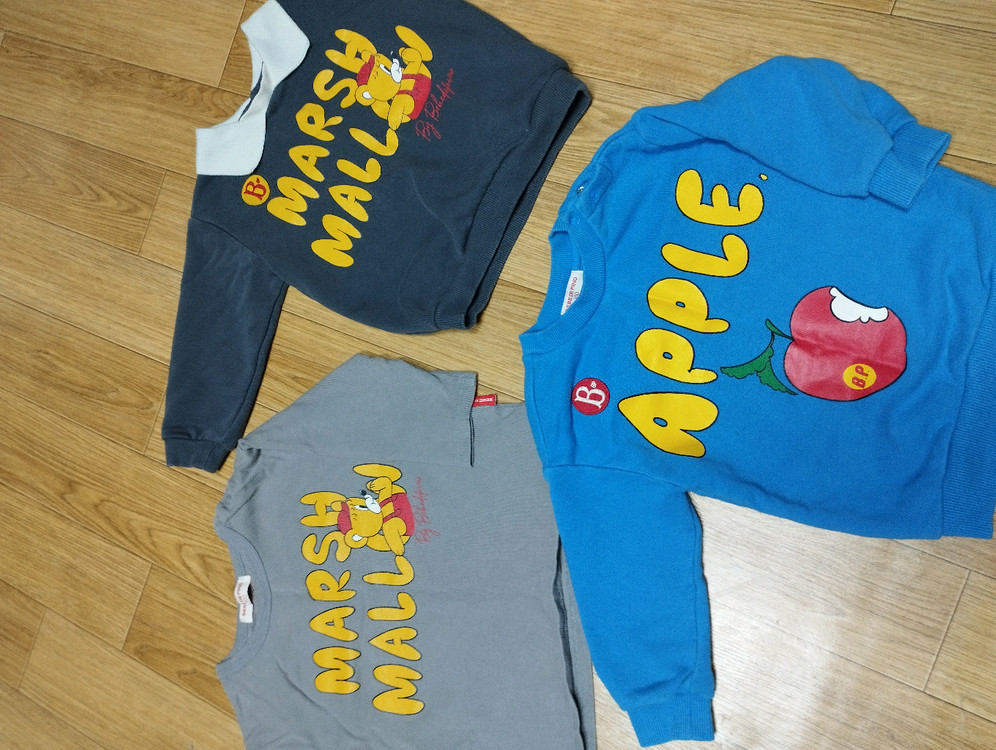 3벌 일괄 사이즈 100 사진에 보시면 카라 뒤쪽 얼룩 있는곳 있어요