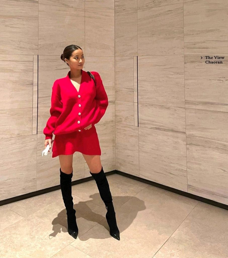 스틸위듀 부클 v넥 울 니트 가디건 스커트 세트(블랙)