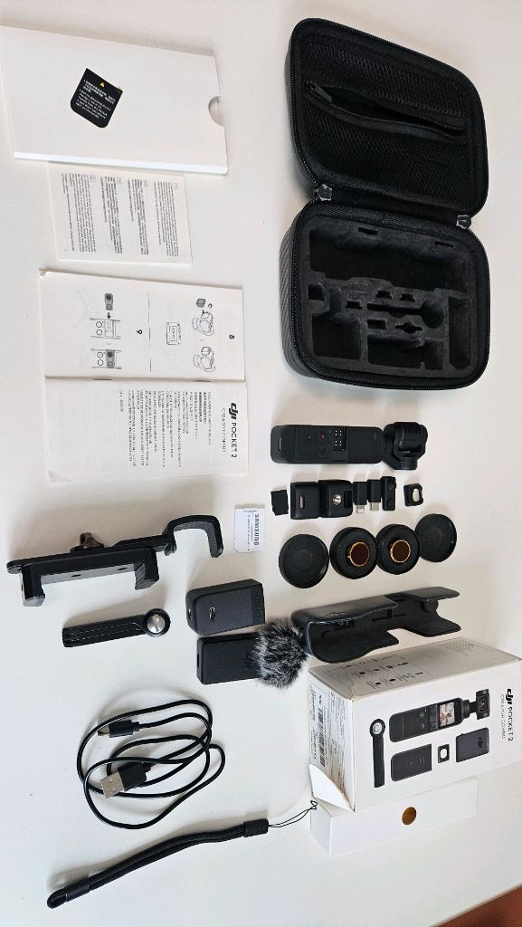 브이로그 해보려고 했으나, 사용하지않아 판매합니다. 영상촬영에 필요한 모든 물품이 구비되어 있습니다. 구성품 본체 본체 커버 미니조종스틱 광각렌즈 삼각대 무선마이크 송신기 무선마이크 윈드스크린(바람소리 보호) 멀티핸들 휴대폰 어댑터 (라이트닝) 휴대폰 어댑터 (C타입) 충전기 (C타입) 손목 스트랩 박스 **별도 구매 보관 케이스 (3만원 상당) ND16,32 PL 필터 2개 (5만원 상당, 감성느낌 연출가능) 삼성 EVO 마이크로 SD카드 256GB (8만원 상당)
