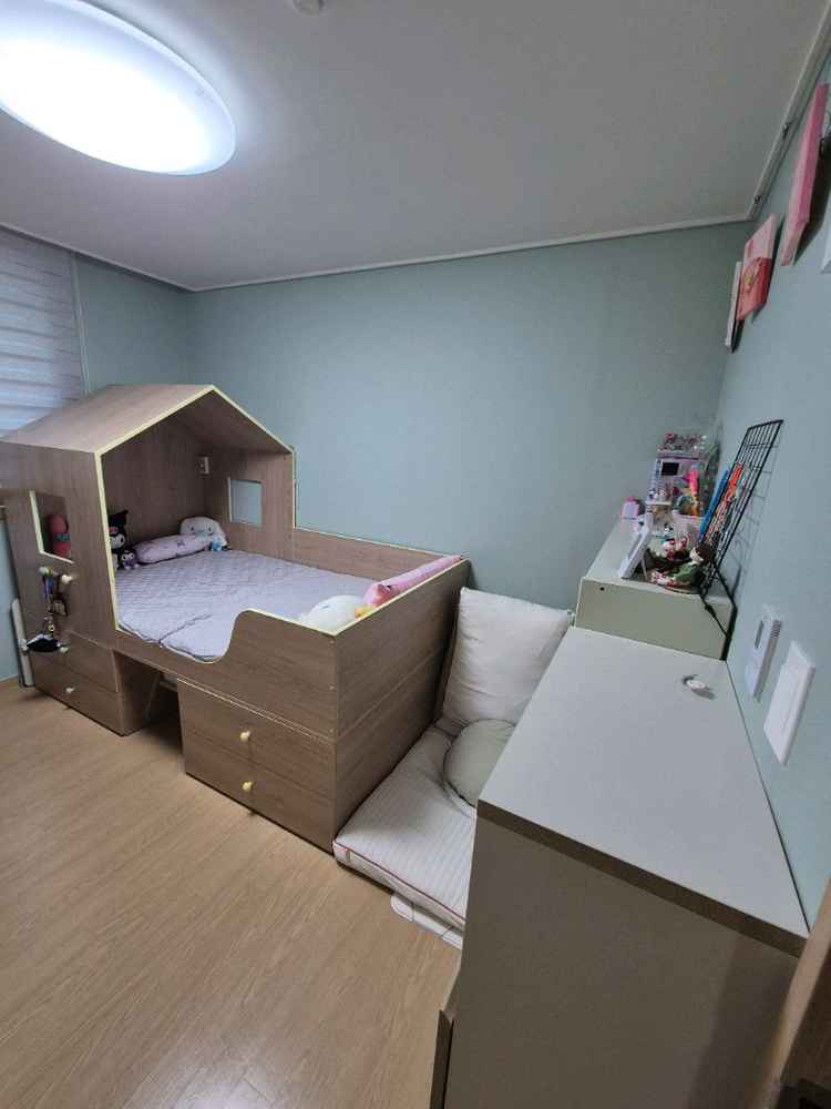 아이방에 딱 맞는 하우스 모양의 침대예요. 동탄키즈리바트 매장에서 매트까지 세트로 구매했어요 아이가 1-2번 낮잠자고 그외에는 인형침대로 사용하네요 안자도 청소업체 불러서 다른침대와 같이 청소케어 받았습니다 생활기스정도는 있으나 거의 새제품 수준입니다 제가 예민한맘이라 깨끗히 사용하는편이라 A급 상태 입니다 리바트몰 오구가구에서 이전설치 견적 받아보시면 됩니다 직접분해는 가구망가져서 원하지 않습니다 가구업체 견적 받아보고 채팅으로만 연락하겠습니다 (대략적 위치는 용인 처인구 고진초쪽 입니다 이전설치 견적시 아파트 2층이라 사다리는 필요없습니다)