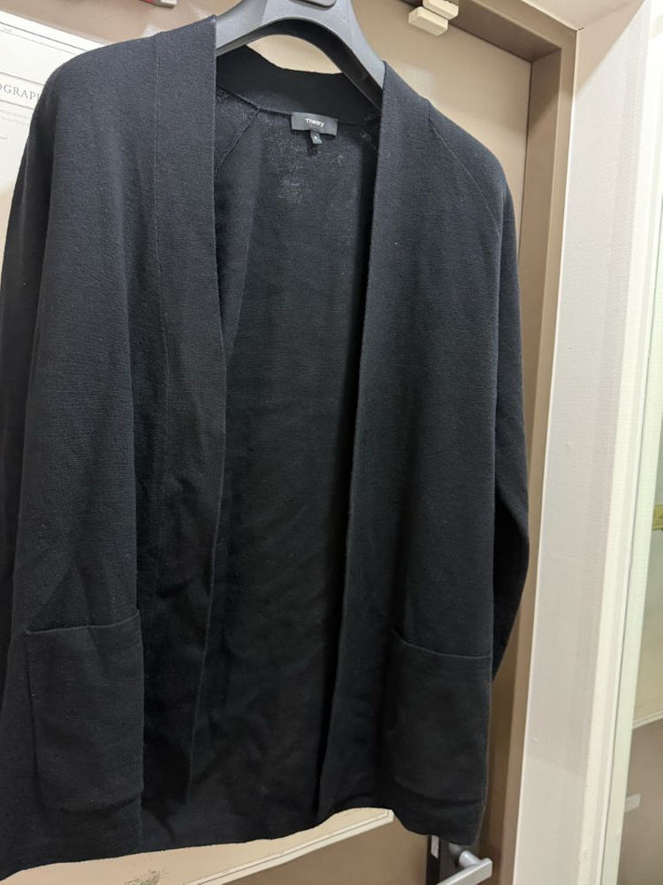 안녕하세요, 띠어리 블랙 니트 가디건입니다. 사이즈는 M사이즈 이며 사진으로 보시다시피 실착을 몇번 하지 않아 깨끗한 상태로 보관되어있습니다. 롱가디건으로 요즘 착용하시기 딱 좋은 상품입니다. 저렴하게 판매하오니 채팅 부탁드립니다. 감사합니다.