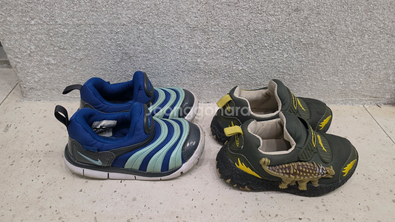 아동화 두 켤레 세트로 판매합니다 - 나이키 다이나모 : 150 - 다이노솔즈 : 공룡 불빛 양쪽 정상, 150 신발에 사용감은 있지만, 편하게 신기기 좋습니다 일괄 15000