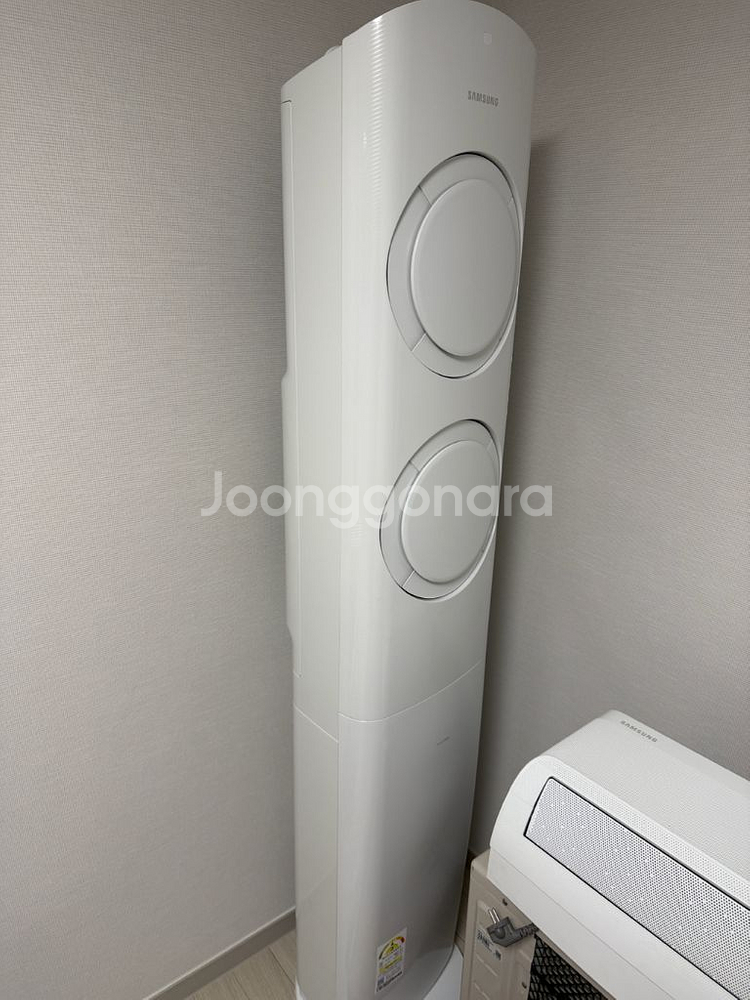삼성 2in1 에어컨이에요. 실내기와 실외기가 포함된 세트로 깔끔한 화이트 컬러입니다. 사용감은 있지만 정상 작동하는 상태예요. 22년 5월 생산 상품이고 스탠딩형은 실가동 1회입니다. 벽걸이형은 2025년에 삼성서비스센터에 내부 세척 진행해서 깨끗합니다. 직접가지고가셔야해요. 구매의사 결정 후에 약속장소 이동하실때 번호드립니다. 그 전에 라인으로 연락 번호 남기기 안받습니다.