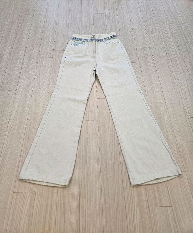 진주버튼, 허리둘레 프레이드 장식, 힙포켓 스티치 디테일이 고급스러운 느낌을 주고 여성스러운 느낌의 상의와 잘 어울립니다 밝은 색상으로 시원한 느낌을 주고 면100 소재로 탄탄하게 잡아줍니다 61(44)사이즈입니다. 세탁완료입니다. 전반적으로 깨끗하고 상태 양호하나, 밝은색이다보니 잔잔한 사용감 있습니다 (마지막 사진 확대해서 살펴보세요) 예민하신 분은 구매 피해주세요 *입금 후 환불 및 반품 불가합니다.