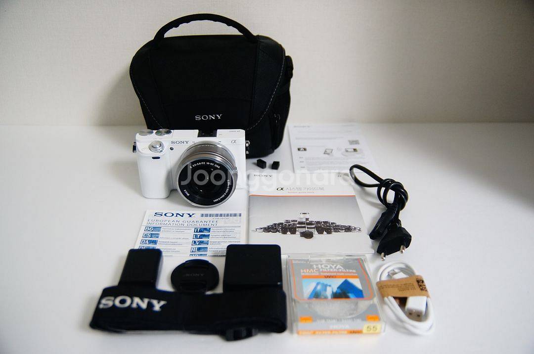 [소니] A6000 화이트 미러리스카메라팝니다.(2,073컷) 구성은 가방, 바디, 렌즈, 필터, 스트랩, 캡, 배터리, 케이블, 충전기입니다. 직거래는 집주소(상왕십리역 2번 인근) 알려드립니다. 택배는 착불 혹은 선불택배(4,000원 추가) 가능합니다 네고 문의는 대답 드리지 않습니다.