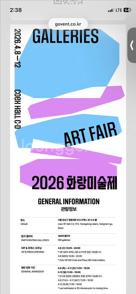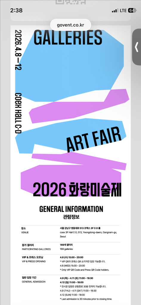 2026 화랑미술제 입장권 이용권 쿠폰 티켓 초청권
