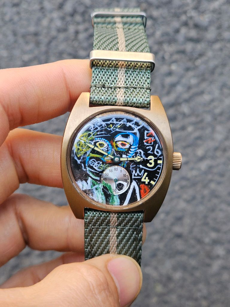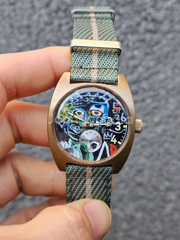 개인정보(거래정보)를 주고받는 행위는 사기에 노출될 수 있으므로 즉시 중고나라로 신고해 주세요묘한 매력이 있는 바스키아그림~ 그린거예요 고민하고 연락주세요 수동시계 러그20 알38정도 몸통은 브론즈 같아요 직거래~