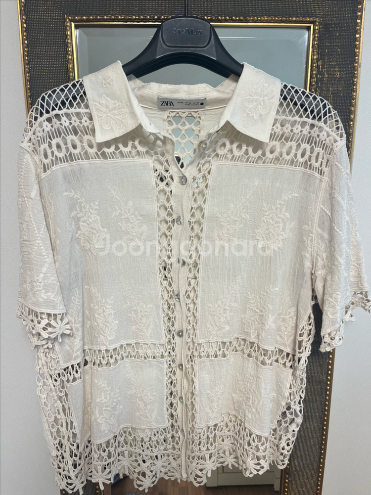 자라 레이스 반팔 셔츠 XL 사이즈입니다 아이보리 색상에 독특한 레이스 디자인이 돋보입니다 여름에 시원하고 스타일리시하게 입을 수 있어요 - 독특한 레이스 디자인 - 시원한 착용감 - 스타일리시한 연출 작년에 구매하고 착용안한 새상픔이에요 십만원 가까이 주고 구매했구요 안에 인어티 감안해서 크게 구입했어요 싸이즈가 구하기 어려운 싸이즈라 여유있게 입으실 분께 추천드려요 가슴둘레: 50센치 총기장:60센치