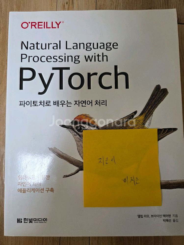 개인정보(거래정보)를 주고받는 행위는 사기에 노출될 수 있으므로 즉시 중고나라로 신고해 주세요파이토치를 사용한 자연어 처리 책 팔아요~ 반값택배(GS/CU)포함해서 12,000원에 팝니다