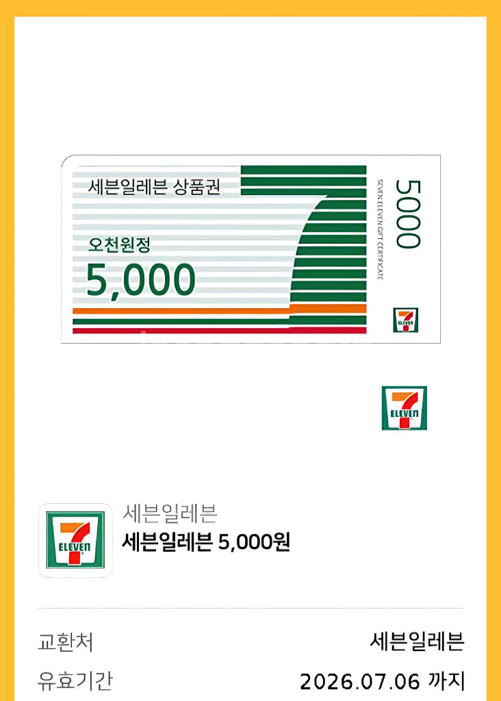 세븐일레븐 5천원 편의점모바일상품권 판매합니다.