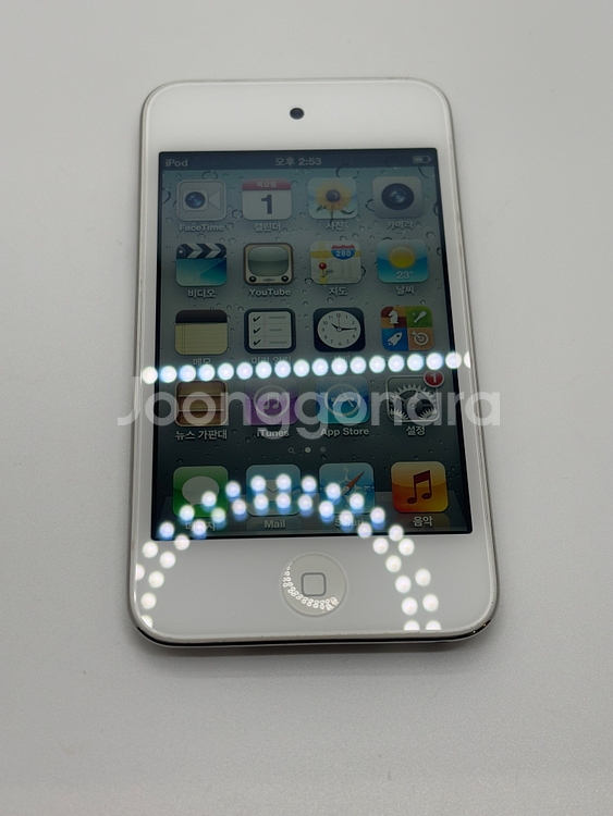 아이팟 터치 4세대 32g 화이트 전면에 미세한 기스들도 거의 없이 깨끗한 상태입니다 후면 윗부분에 기스 많고 다른 부분은 약간의 잔기스들과 특유의 광택 남아있습니다 작동 이상없습니다 특이사항으로 iOS5.1.1 구버전 입니다 구버전이 조금 더 쾌적하고 iOS특성상 다운그레이드가 어렵기 때문에 희소성이 있어서 그대로 유지중이고 원하시면 아이튠즈 연결해서 마지막 지원 버전(iOS6.1.6)까지 업데이트 가능합니다 배터리 완충 후 카메라로 영상 촬영시 대략 1시간 이상 촬영 가능합니다 단순 음악 재생의 경우에 대략 15시간 이상 가능합니다 구성품은 기기 + 30핀 usb케이블 입니다 케이블로 usb a포트 충전기 또는 컴퓨터에 연결하셔서 충전 및 음악 넣으실 수 있습니다 판매 완료 되어있지 않으면 계속 판매 중인상태입니다 구매 원하시는 경우 별도의 톡 필요없이 바로 결제하셔도 됩니다