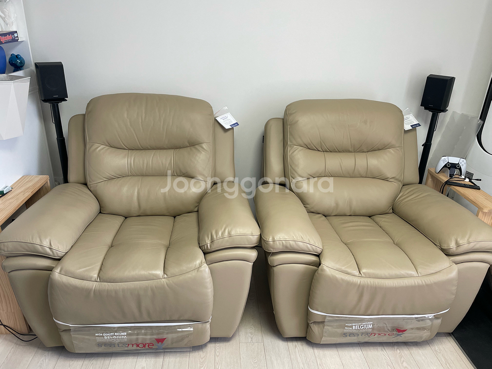 시트앤모어 리클라이너 골든아일 소파 1인용 소가죽에 편안하고 전동이라서 좋습니다 한대에 100만원씩 구매했습니다 소파 다리쪽 보호 필름과 새제품 택도 안땠습니다 반값에 판매하며 새것처럼 깨끗합니다 그리고 한대 구매하시면 1+1으로 한대 더드립니다 한대는 거의 이용 안하여 완전 새것같은 상태이며 무료로 드리는 한대도 새것같습니다 머리쪽에 염색약이 조금 뭍었을뿐 거의 앉은적 없어서 착석감은 새것처럼 매우 좋습니다 지금 구매하시면 용달비용 10만원까지 제가 내드리겠습니다 (직접 차량 가져오시는 분들도 10만원 드릴게요) 연락주세요