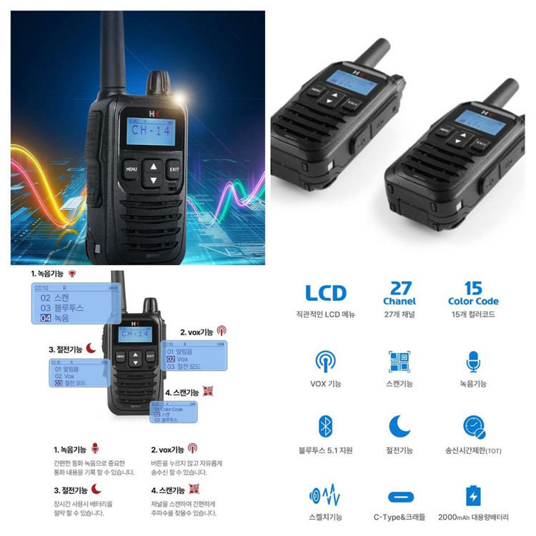 블루투스 기능이 지원되는 생활용 무전기입니다. LCD 메뉴로 직관적인 사용이 가능하며, 27개 채널을 지원합니다. C타입 충전 단자를 지원하며, 2000mAh 대용량 배터리가 내장되어 있습니다. HK700BT 인터넷 최저가 개당 10만원 상태 양호합니다 선릉 한티 방면 직거래 가능합니다 택배 가능해요