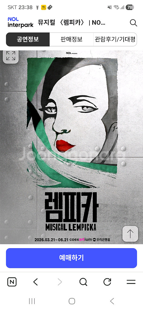 뮤지컬 렘피카 R석 비지정석티켓입니다. 2매 10만원 일정:2026년 4월11일 토요일 14시 장소:코엑스 아티움 우리은행 캐스팅:김선영 차지연 조형균 김혜미 김현숙 정가 장당 12만원인데 개인사정상 불참해서 판매합니다. 현장에서 지류발권가능 예매정보 드립니다. 환불불가