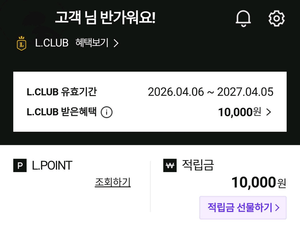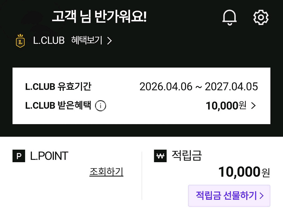롯데백화점 적립금 10000원선물