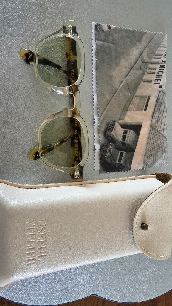 유즈풀아뜰리에 르마레선글라스입니다. 이태리 마쯔겔리 아세테이트 소재로 착용시 엄청 가벼워요. 칼자이즈 올리브색 변색렌즈로 업그레이드하여 시야도 시원하고 실내, 실외 유용하게 쓰실수있어요. 렌즈업그레이드하여 338000원에 구입하였습니다. 동일디자인 레오파드색상이 있어 몇번 착용하지않아 상태 좋습니다^^