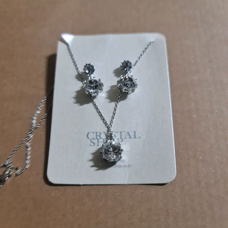 개인정보(거래정보)를 주고받는 행위는 사기에 노출될 수 있으므로 즉시 중고나라로 신고해 주세요크리스탈샵 목걸이 귀걸이 세트입니다 스와로브스키 엘레멘츠를 사용하여 제작되었으며, 선물용으로도 좋을 것 같아요 새상품인대 박스 훼손