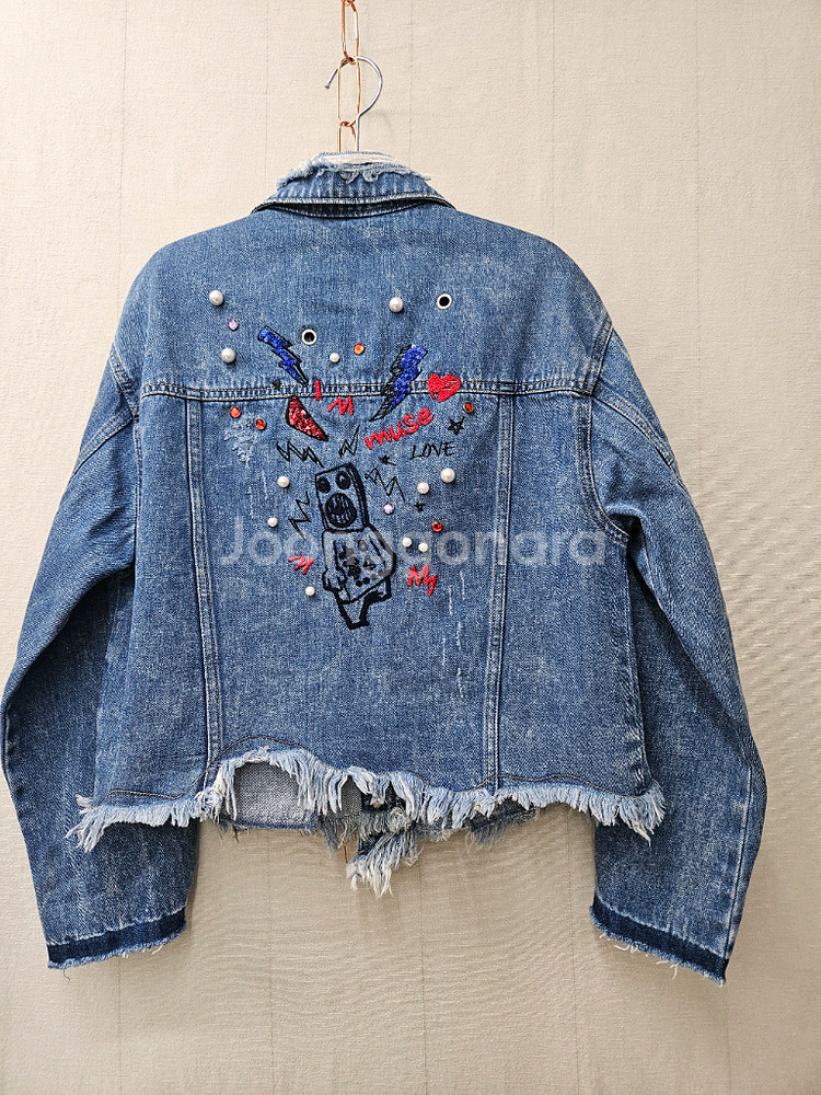탱커스 브랜드의 빈티지데님자켓입니다 독특한 자수와 비즈 장식이 돋보이는 데님 자켓입니다. 빈티지한 워싱과 찢어진 디테일이 멋스러움을 더하며, 밑단은 자연스럽게 풀린 디자인으로 캐주얼하게 연출하기 좋습니다. 편안하면서도 개성 있는 스타일을 완성해 보세요. 진주소매장식 사이즈 55~66 가슴단면 47 길이 53