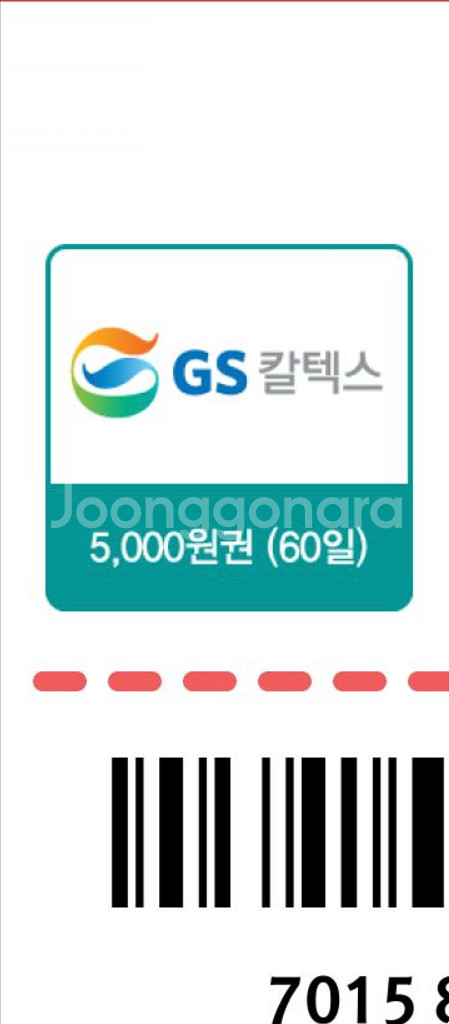개인정보(거래정보)를 주고받는 행위는 사기에 노출될 수 있으므로 즉시 중고나라로 신고해 주세요장당 4500원 12장 기준판매만해요 유효 60일 거래시간 오전 9시- 18시 월~ 금요일 (주말불가) 모바일 발송 GS
