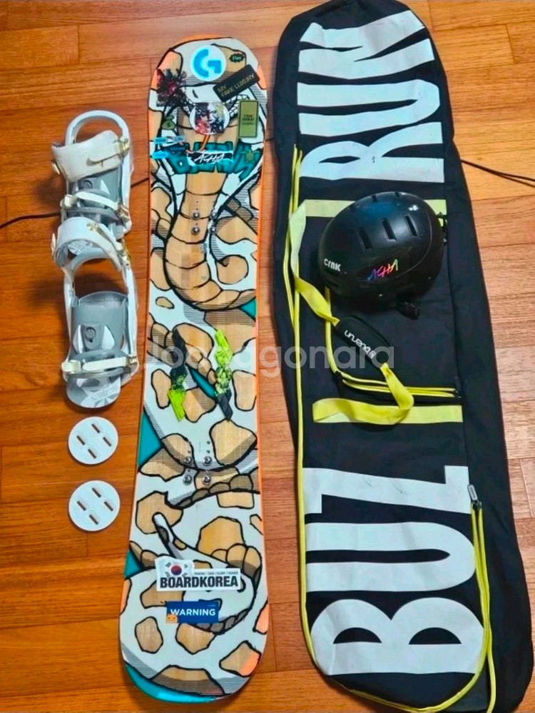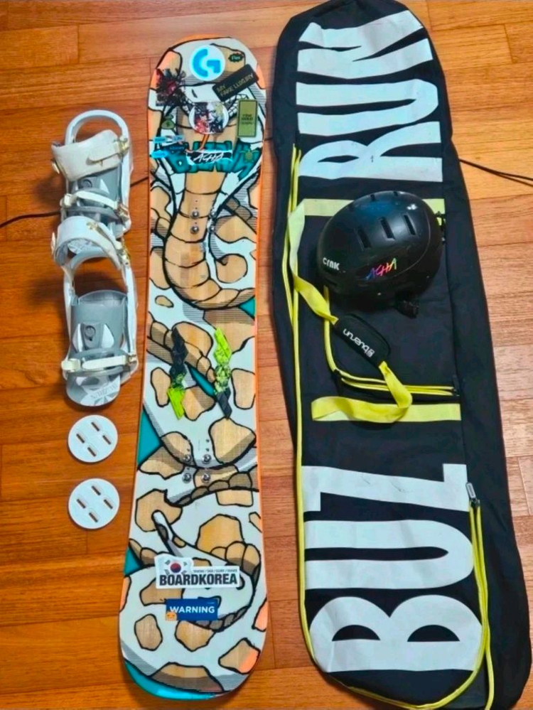스노우보드와 바인딩, 헬멧이 포함된 완전한 세트 Buzrun 스노우보드 풀세트 판매합니다 - 스노우보드 데크 - 바인딩 - 부츠 (265mm) 만은 별도판매: 250,000원 - 헬멧 (CN4K) - 보호대 (SFR) - 스노우보드 가방 (Burton) 브츠만은 별도 구입가능 보드 바닥 흰색으로 보이는 사진은 왁스처리해논 상태임. 참고로 에찌에 녹이 조금이라도 잇으면 녹이번져 수명다한 거니 싸구려 보드사시면 안됩니다 스노우보드 풀세트 판매합니다 보드길이 157cm - 보드 브랜드는 BUZRUN입니다 -●디럭스 The Brisse 스노우보드 부츠입니다. 250,000원 - 사이즈는 MO 26.5, - 스케이트 플렉스 솔을 사용하여 발에서 얻은 정보를 직접 전달하여 섬세한 보드 컨트롤이 가능합니다 DEELUXE THE BRISSE 브랜드는 직접검색요망 저는 줄곧 스키를 타서 보드를 배우려고 일본에서 25.1. 약77,,000-엔 구입했으나 나와 안맞아 포기. 2시즌 사용으로 거의 새거나 다름없음 스키부츠와 보드부츠는 발이 아프면 엄청고생하니 부츠만큼은 투자를 해야지 플레이트 비싼거 중요치않습니다 보드셋트만은12만원(부츠제외) 디럭스부츠만 별도로 25만원 판매게시글 올렷으니 검색바람 사양.모델 사이즈 게시했으니 일일이 답변안함. - 바인딩 포함되어 있습니다 바인딩은 위치폭 셋트를 위해 분리해논 상태. 보호장구일체 - CRNIK SASQUATCH 헬멧과 부츠가방도 함께 드립니다 전체적으로 사용감은 있지만, 시즌끝나면 왁싱.에찌작업해서 충분히 사용 가능합니다 사진 참고해주세요. 직거래는 자곡로204-25 더시그넘하우스 개인정보상,현금 또는 당근페이 로만 거래합니다 중고인 점 감안하시고 예민한 분은 사절합니다. 거래 후, 취소불가