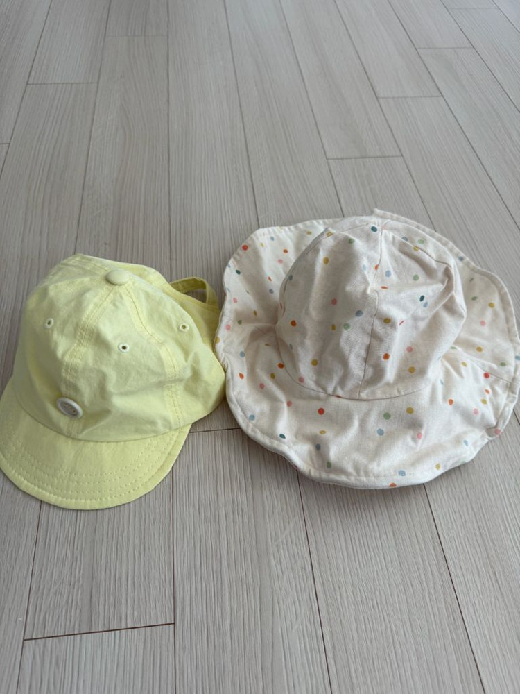 개인정보(거래정보)를 주고받는 행위는 사기에 노출될 수 있으므로 즉시 중고나라로 신고해 주세요사용감 없어요 귀여운 아기 모자 두 개 세트예요 노란색 캡 모자에는 스마일 버튼이 달려있고, 아이보리빛 모자에는 알록달록한 도트 무늬가 있어요 사이즈는 L(52-54cm)이고 면 소재로 되어있어요 햇볕 좋은 날 외출할 때 아이에게 딱이랍니다