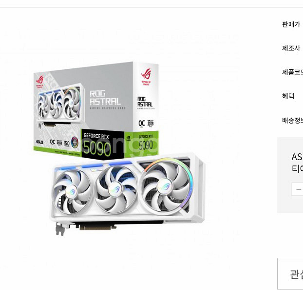 GeForce RTX 5080화스트랄 웃돈주고5090아스트랄 화이트 구합니다
