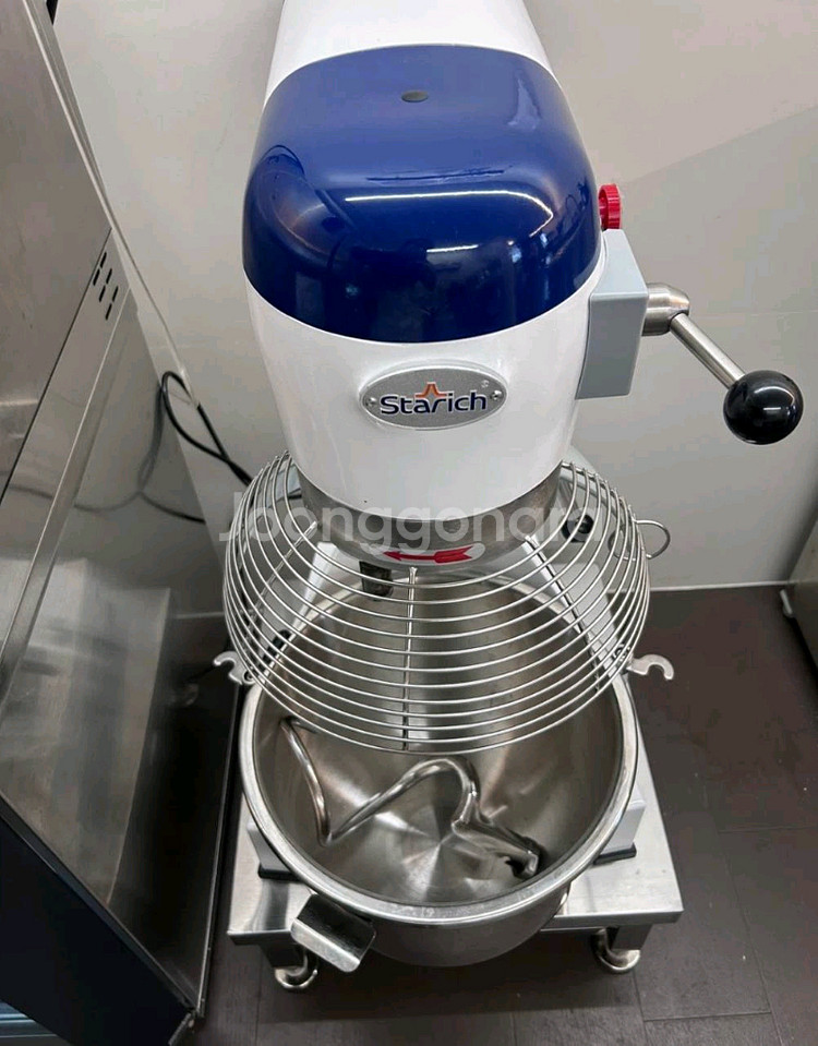 스타리치 20L 업소용 반죽기입니다!(+받침대) 주방 업체 통해 2025년 12월에 구매 설치 후 실 사용 5회정도 입니다. 거의 새상품 입니다. 가게 스펙에 맞지않아 판매합니다. 볼,비터,훅,휘퍼 그리고 받침대 까지 포함 가격입니다. 볼 꺼내고 들기 쉽게 받침대 맞춤 제작 했습니다! (받침대 높이 25-26cm 정도 입니다.) 자주 쓰지 않았지만 매일 닦고 관리해서 아주 깨끗합니다 !