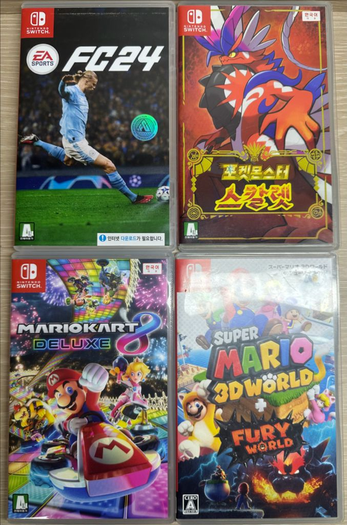 개인정보(거래정보)를 주고받는 행위는 사기에 노출될 수 있으므로 즉시 중고나라로 신고해 주세요fc24- 1.9 포켓몬스터 스칼렛-(판매완료) 마리오카트8 디럭스-(판매완료) 슈퍼마리오3D월드 퓨리월드- 3.5 일반택배 3,800원 반값택배 1,900원 뽁뽁이 포장해서 당일날 안전하게 부쳐드립니다:) 연락주세요:))